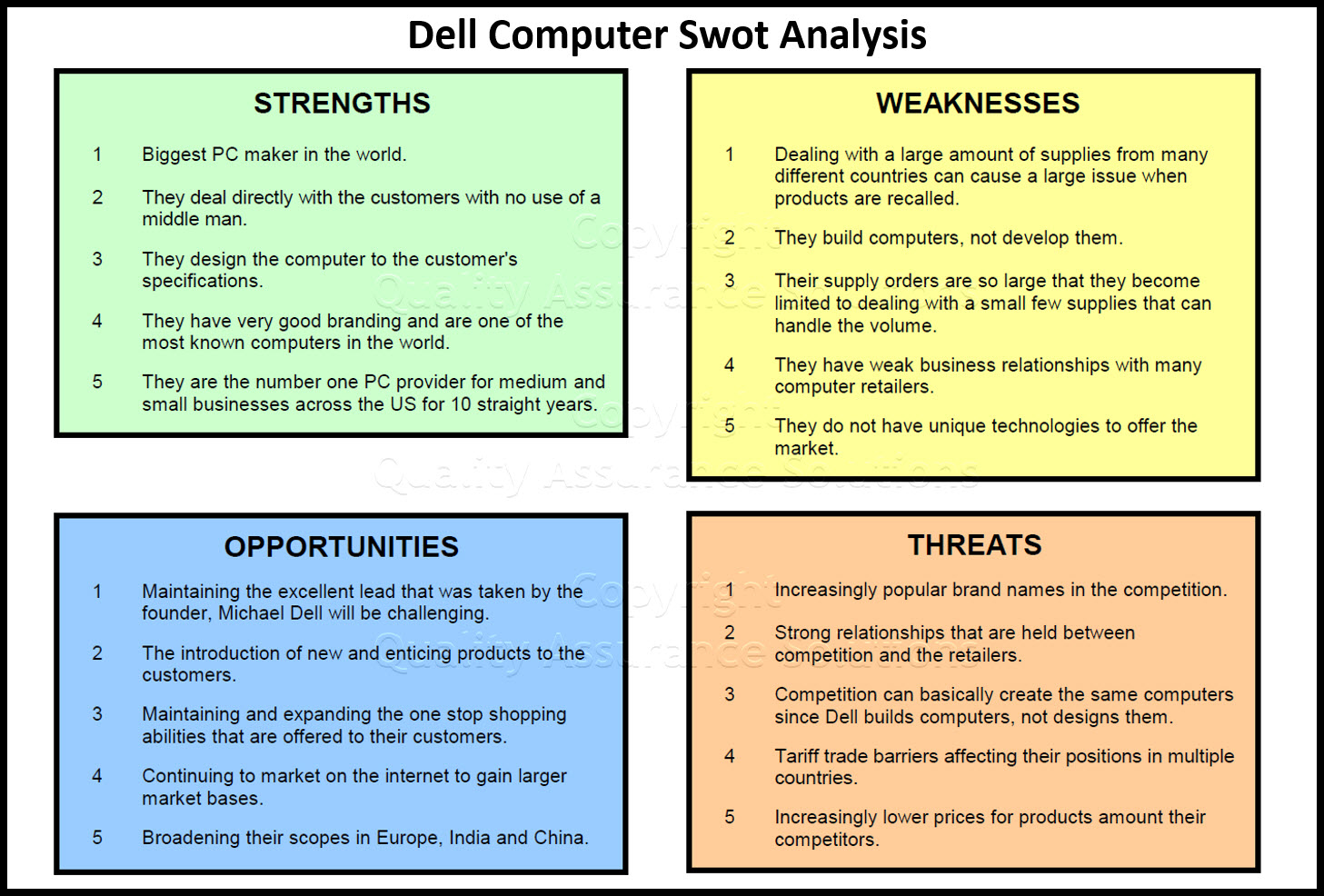 SWOT analysis sample is a technique whereby a business' internal and external environment is assessed to determine its strengths and weaknesses. Those factors that are affecting the business internally are Strengths (positive) and Weaknesses (negative), denoted by the letters "SW" in the acronym, and those factors affecting a business externally are opportunities (positive) or Threats (negative), denoted by the letters "OT" in the acronym. Determining what the factors are, thus establishing a sort of blueprint, is known as SWOT analysis.